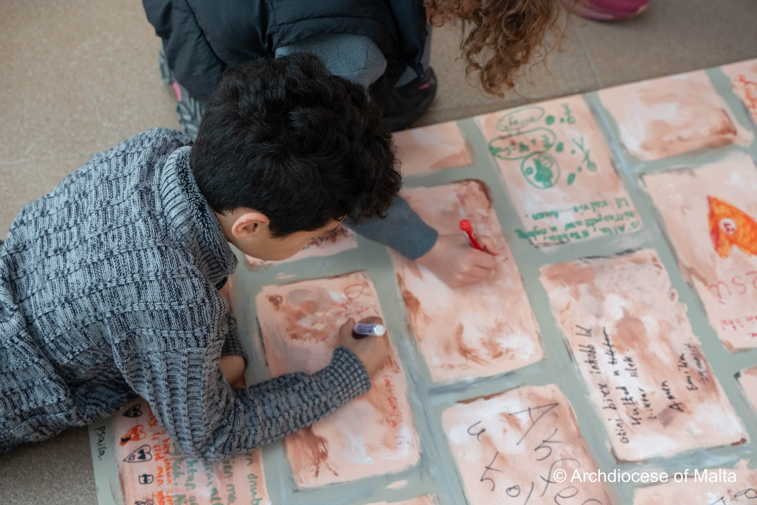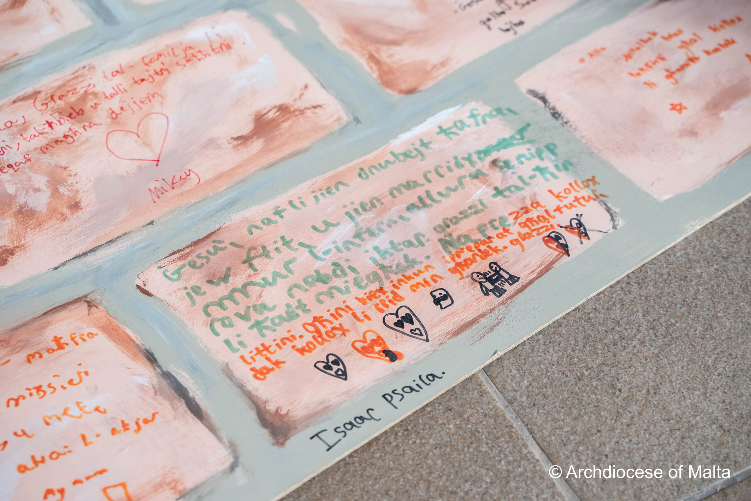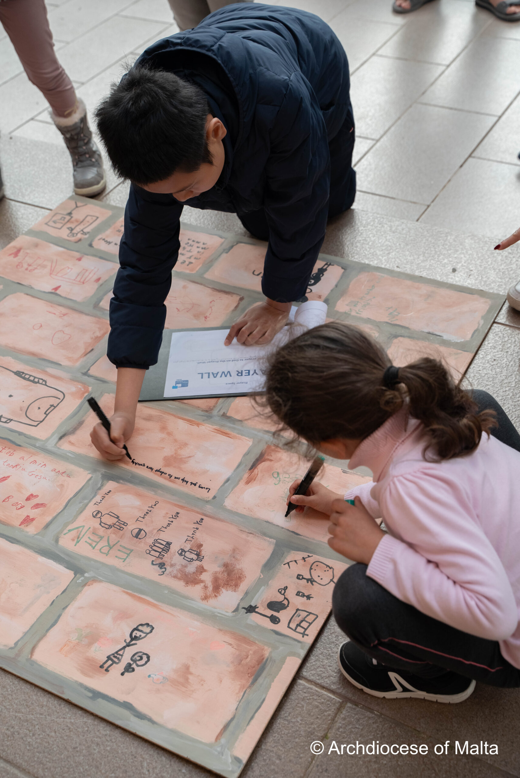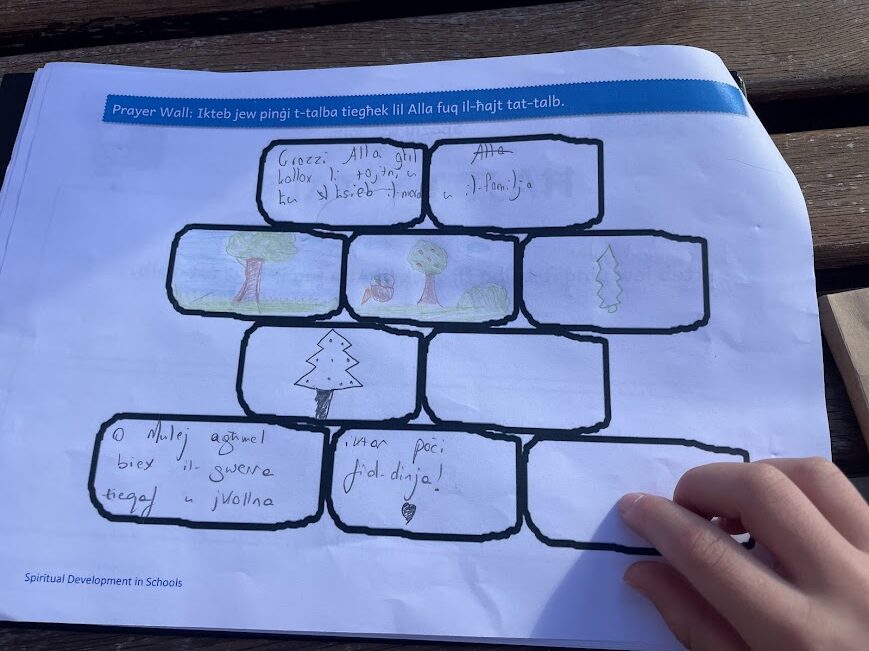 After the storytelling, the children moved into a prayer space experience inspired by the story itself. Just as the characters in the story used the wall, the children were invited to write on a wooden wall prepared for them. This moment became very meaningful as they wrote their thoughts, feelings, and prayers quietly and respectfully.