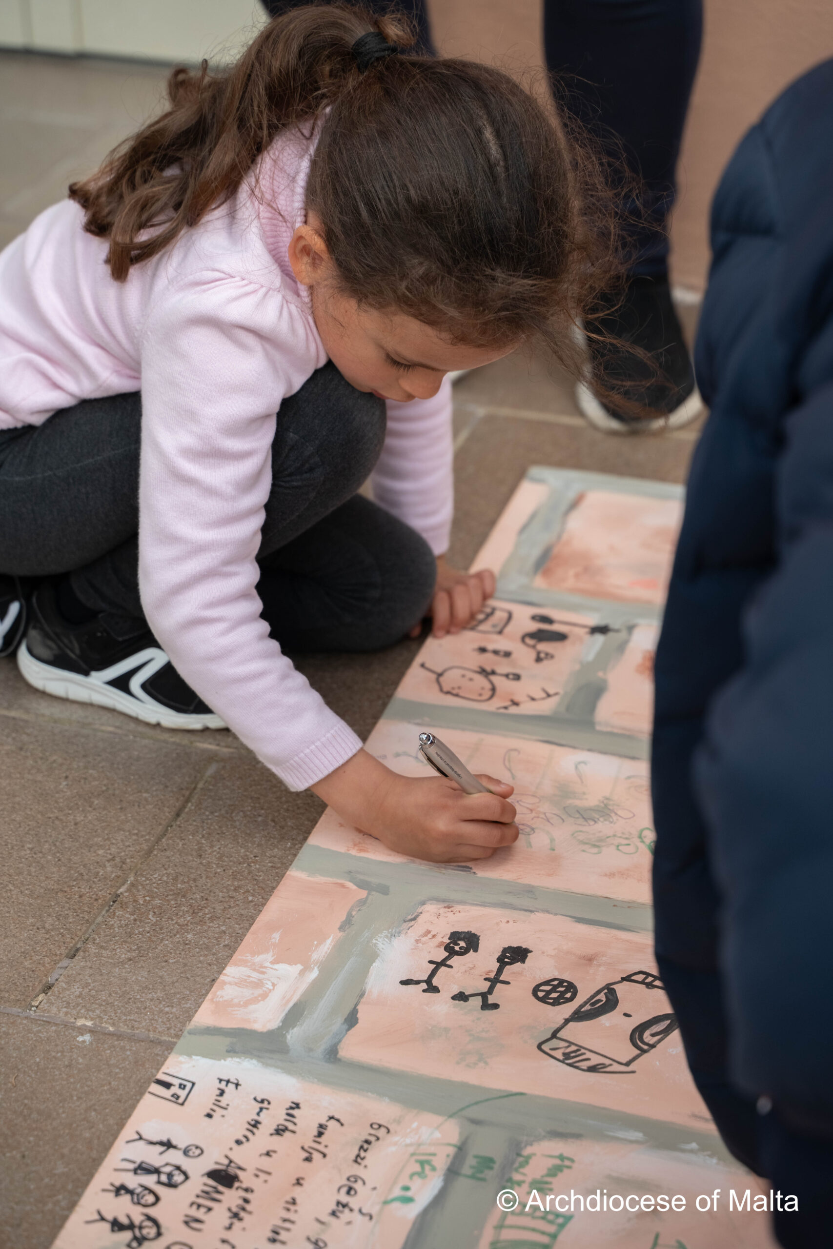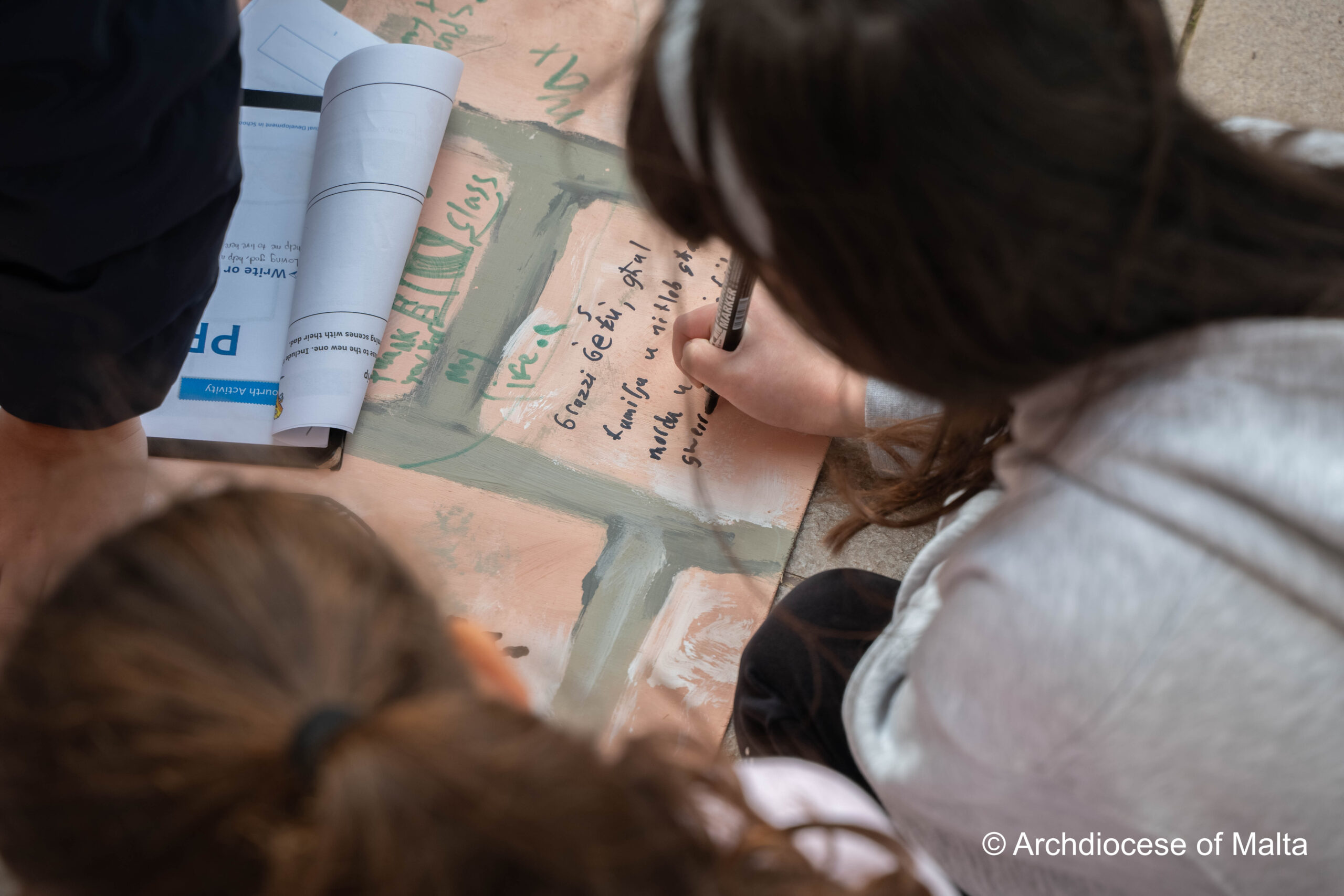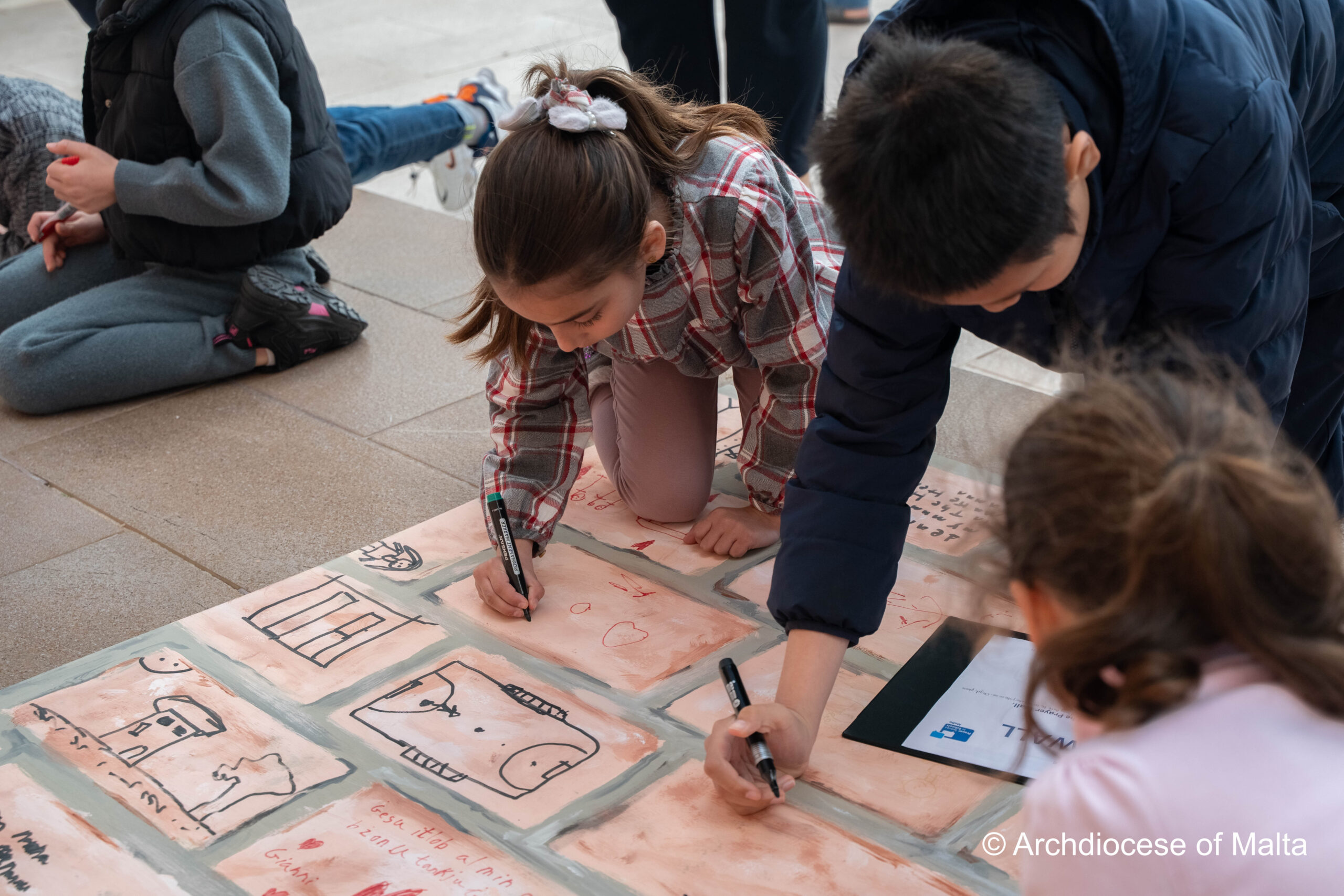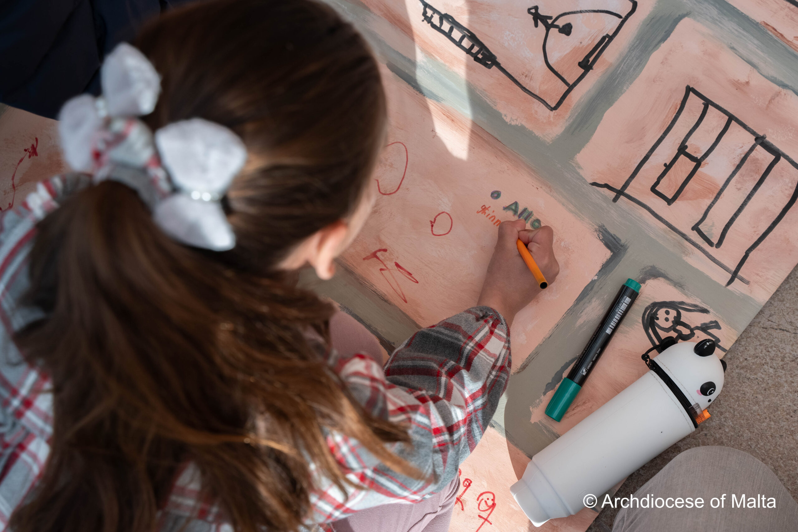 After the storytelling, the children moved into a prayer space experience inspired by the story itself. Just as the characters in the story used the wall, the children were invited to write on a wooden wall prepared for them. This moment became very meaningful as they wrote their thoughts, feelings, and prayers quietly and respectfully.